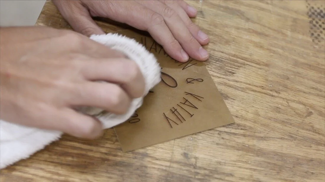 There are a number of things you can use to clean smoke stain left on leather by the laser. Often, people will use rubbing alcohol or denatured alcohol. However, sometimes using these will discolor the leather a bit, leaving it darker in some places than it was previously. I didn’t want this, so I opted to just buff the surface of the leather with a clean, cotton cloth. I picked up this hint from my friend, Jeremy, since he had done a good bit with lasers and leather. Because this leather had a nice smooth finish on the surface, it worked pretty well. If a leather was kind of dull, it might not have worked so well.