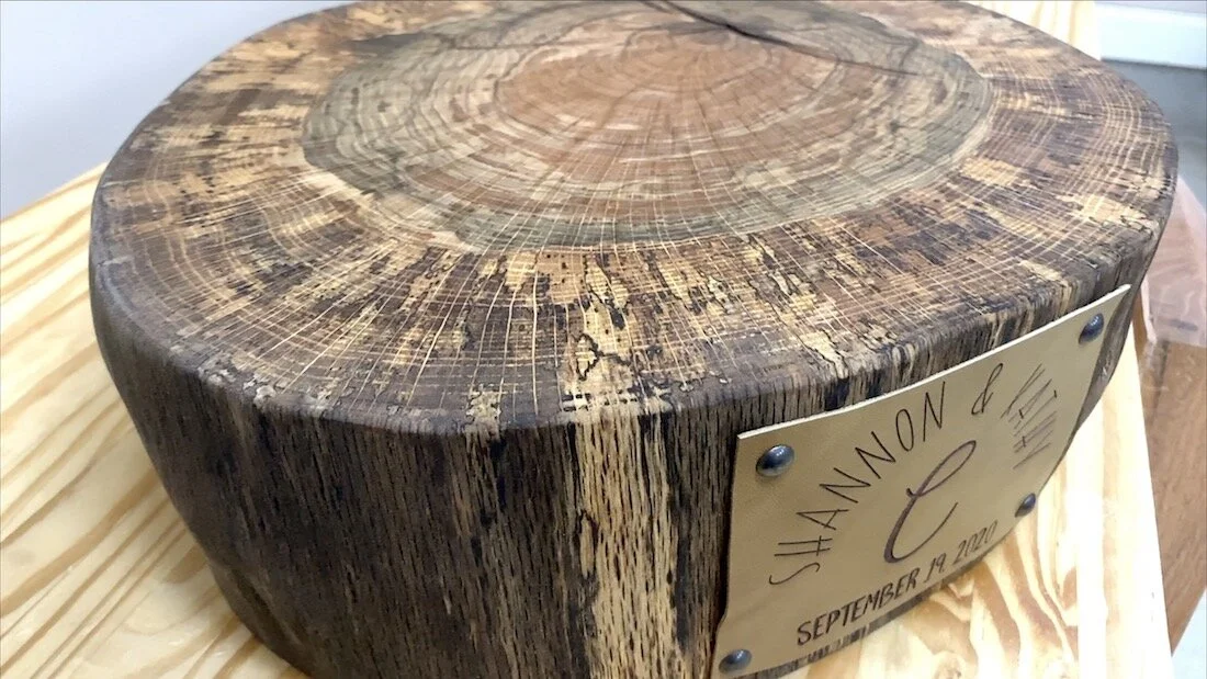 In this project, I am making a DIY Cake Stand For A Wedding. I had a client reach out, needing a cake stand for their upcoming wedding, so after talking about some of the details, this is what I came up with. And if you’re wondering why the stump in the following steps looks a bit different than the one I used in the thumbnail for the video, it’s because it is a different stump. ha. This client’s wedding had not happened yet at the time of releasing this, and I happened to make another one for a family event, so I was able to get finished photos with a cake on it from that.