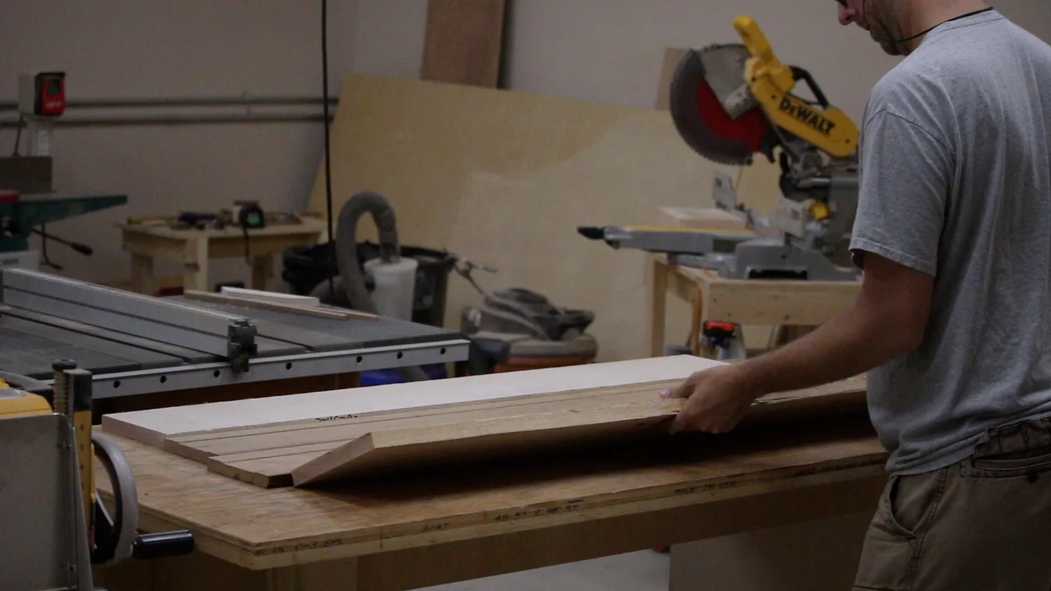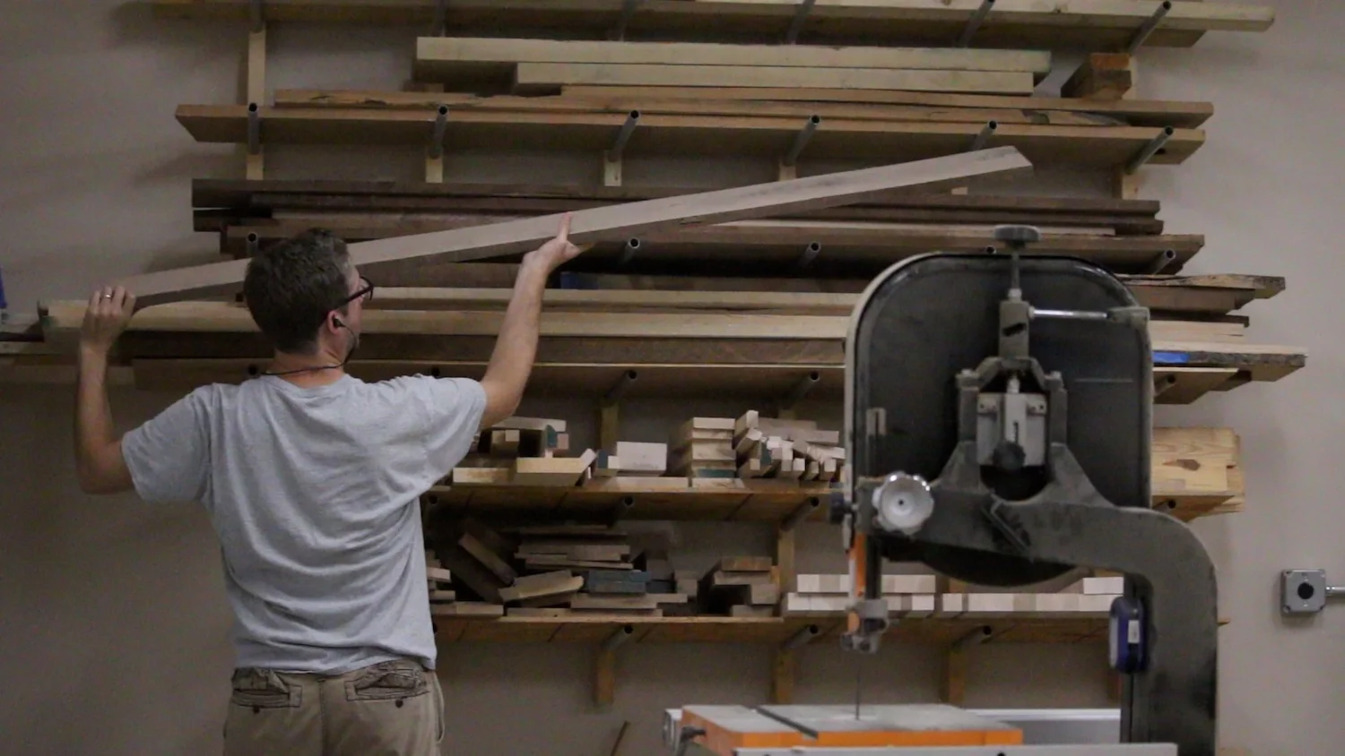 I started off by getting a bunch of different types of wood and cutting them to rough length on the miter saw. You can see me stacking them up on the bench to see if I have enough.