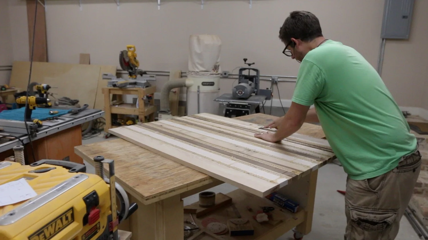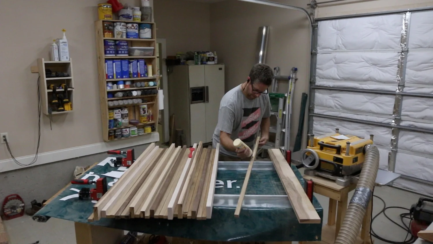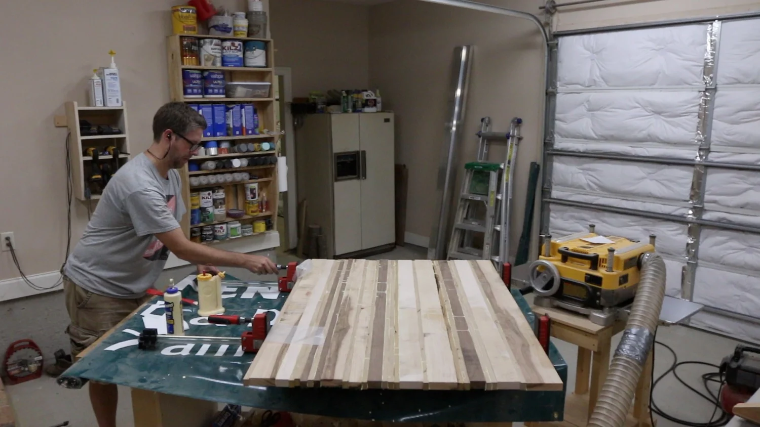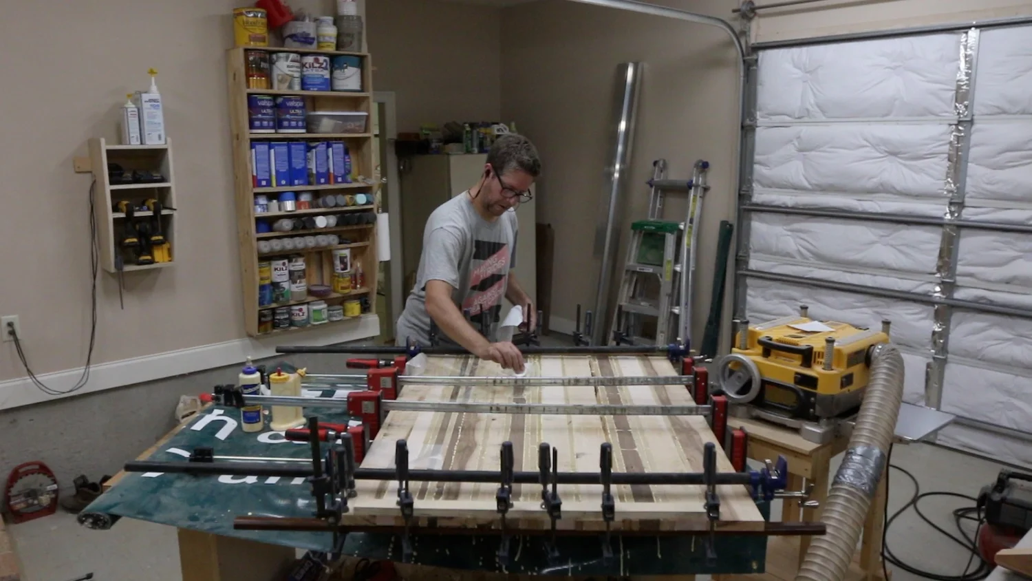 Once I had them arranged in a way that I liked, and all of the edges were flat and parallel, I started one of the most stressful glue-ups I've ever done! There were so many boards, and I wanted a good amount of glue coverage, so there was glue everywhere!