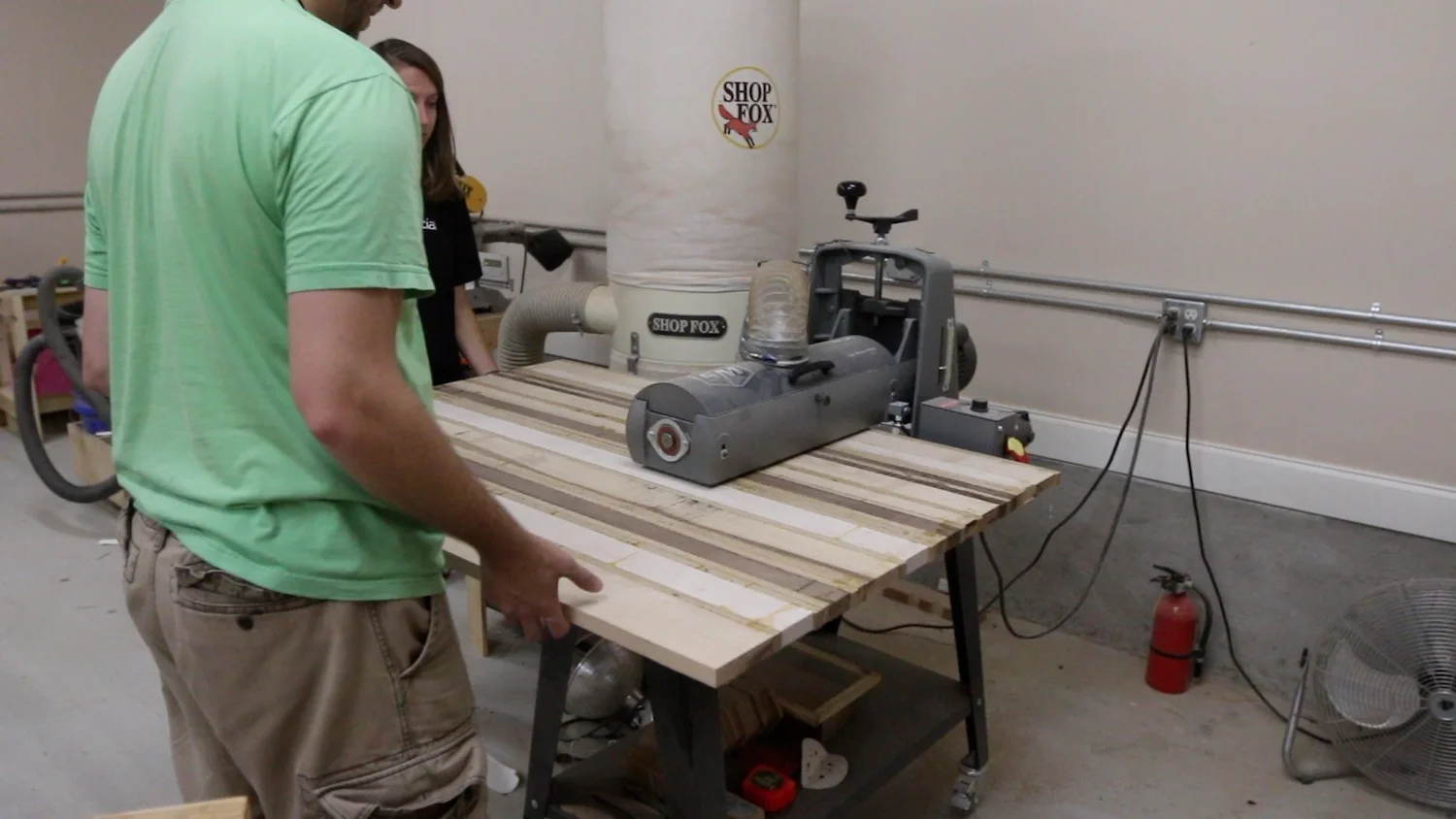 Then, I ran it through the drum sander a few times. This thing was so heavy, I had a hard time using the drum sander to flatten it effectively. It CAN be used for this kind of thing, but maybe I don't have the knowledge of how to use it for something so wide and heavy yet.