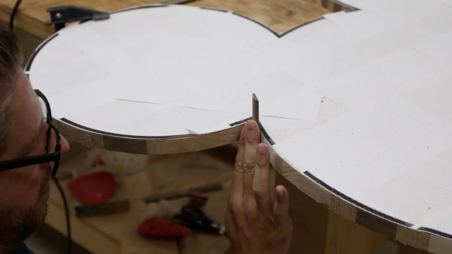 I refined the shape and edges through a series of belt sanders, files and my random orbit sander.