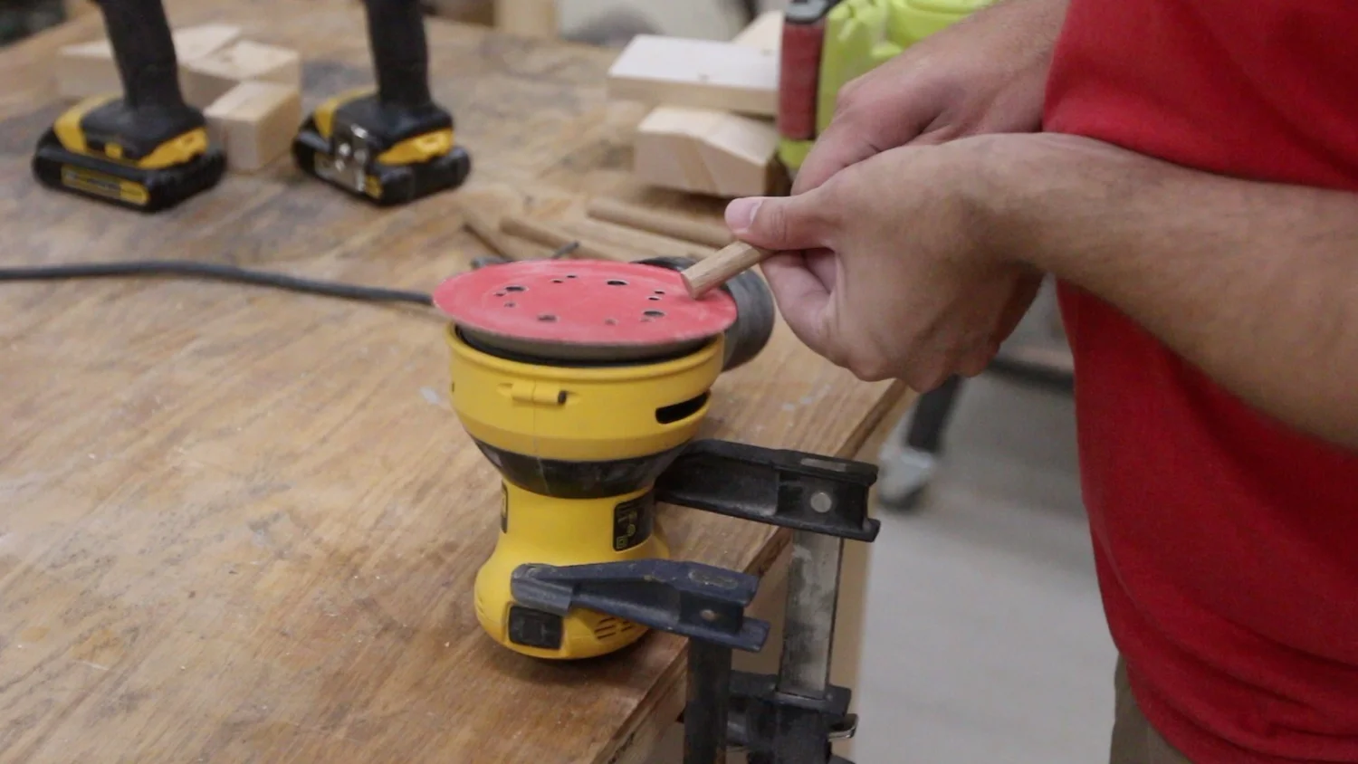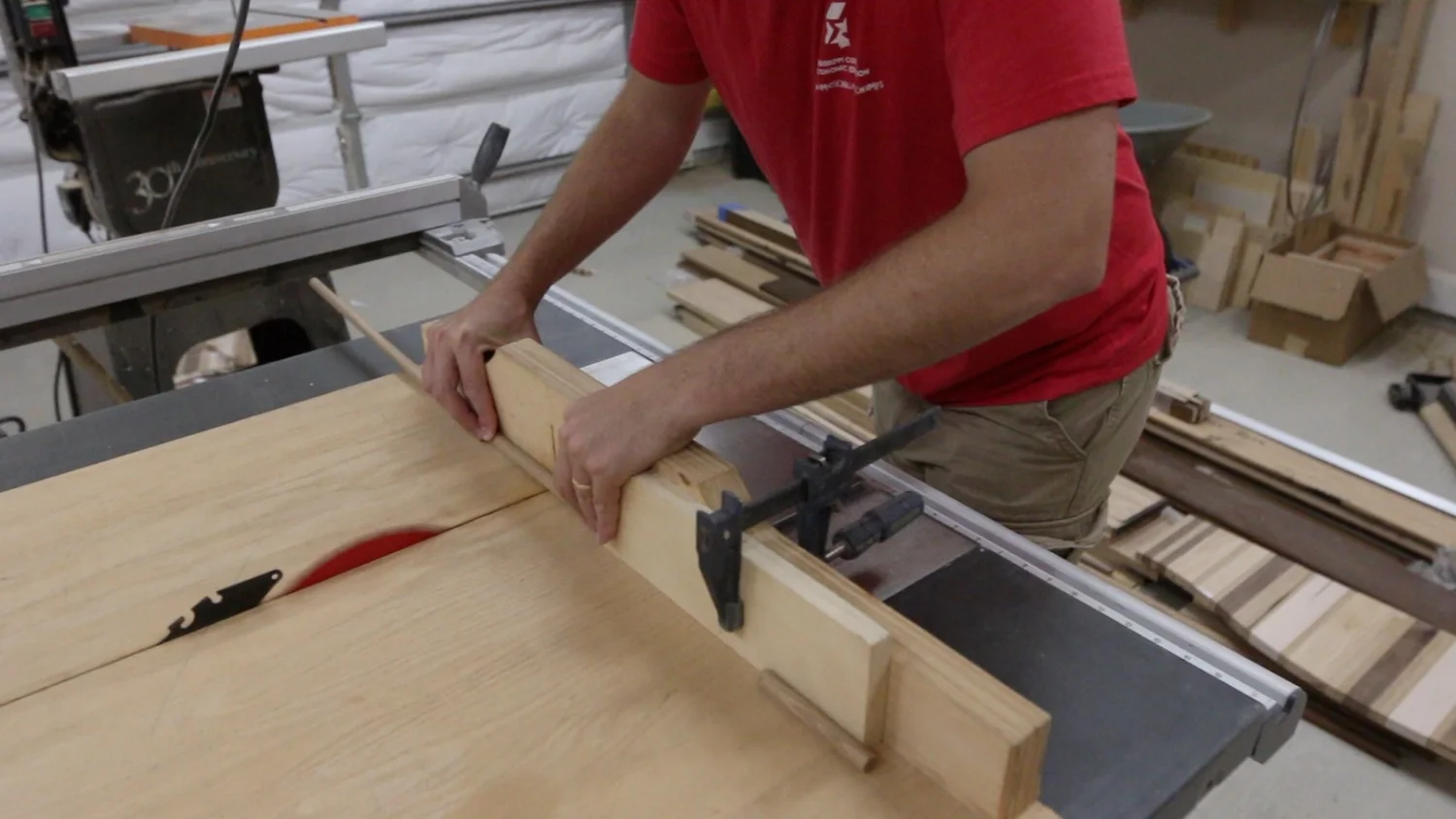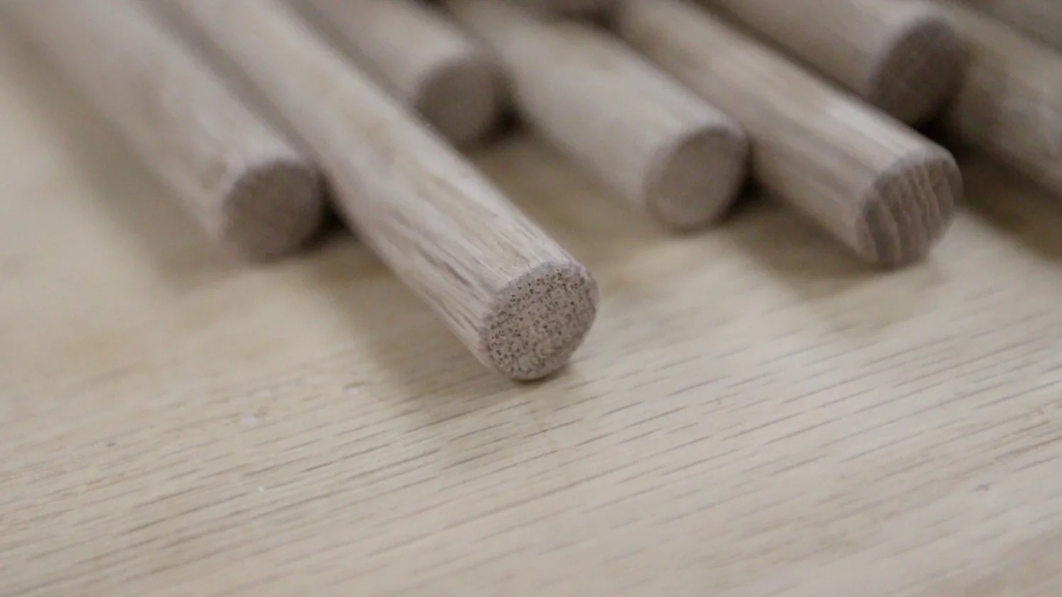 I used a stop block at my table saw sled to cut out all of the oak dowels.
