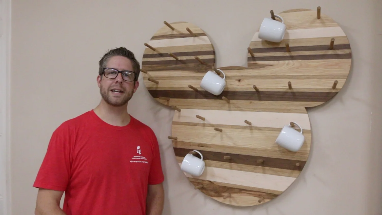 Some friends of mine are really, really into all things Disney. They were setting up a new coffee station in their house, and they wanted a large, Mickey Mouse mug holder for the wall, so I made one. Watch the video to see how it was made: