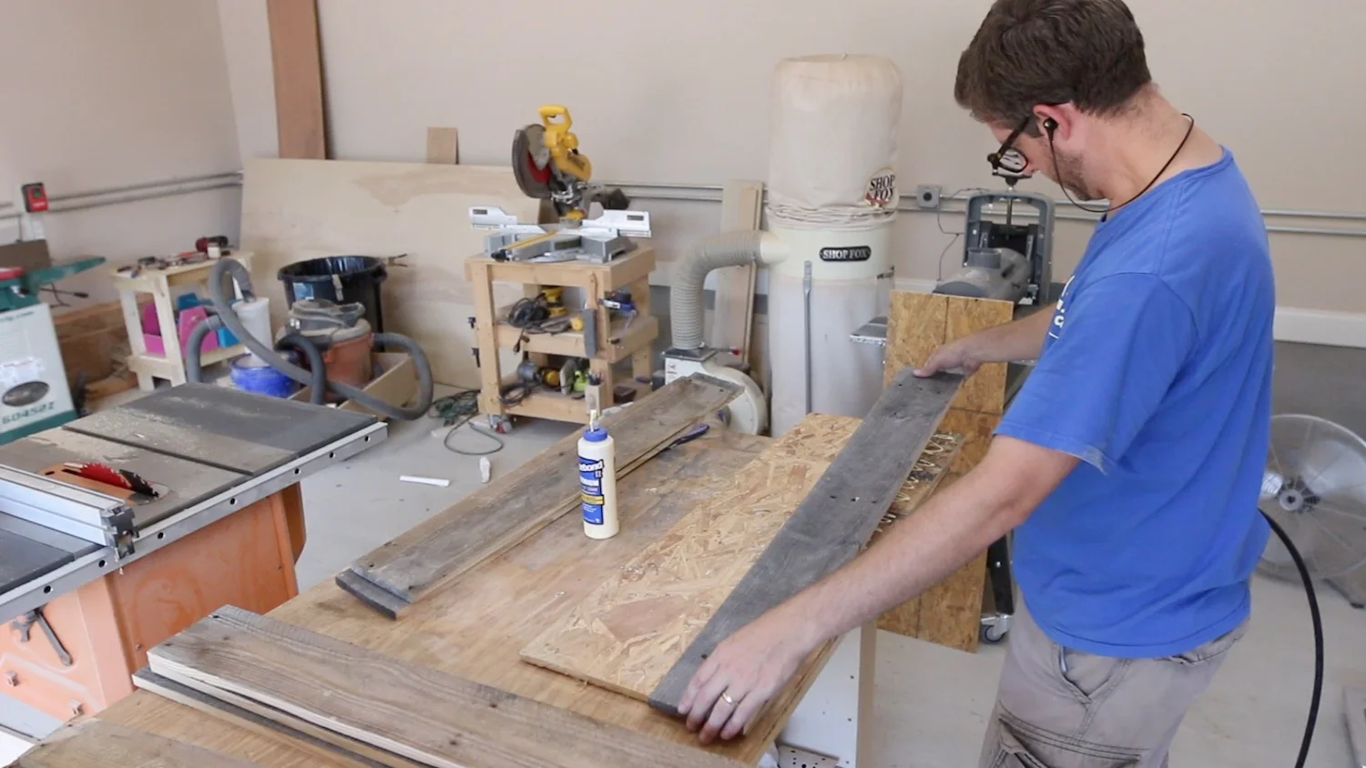 A few of the gaps were quite large, since this material was so warped, so I used some sawdust mixed with glue to fill in some of them. I was careful not to sand too much. I didn't want to take this nice patina off of the old, barn wood.