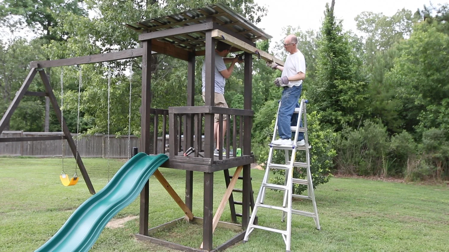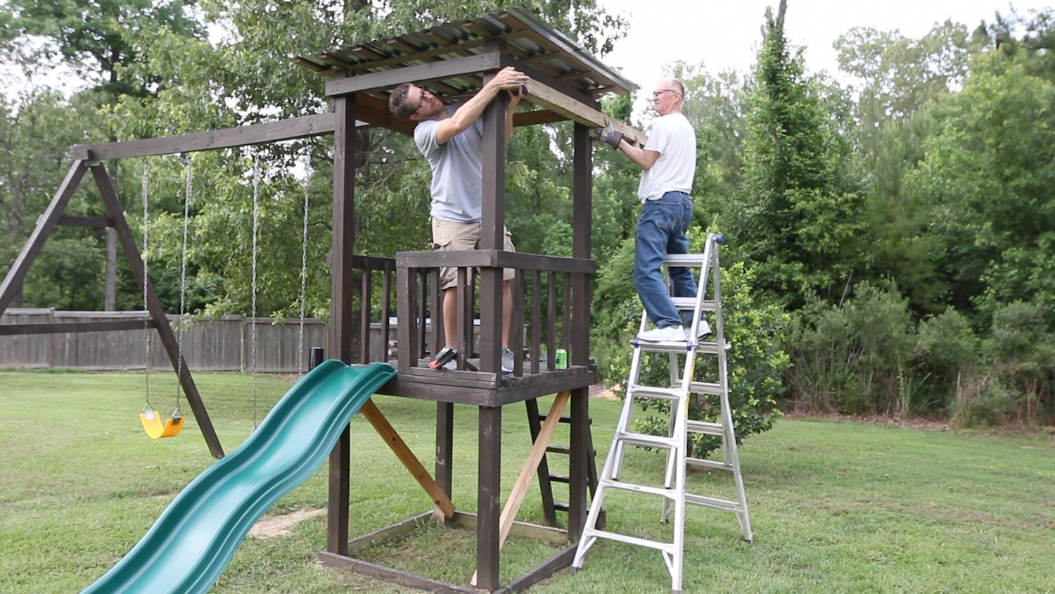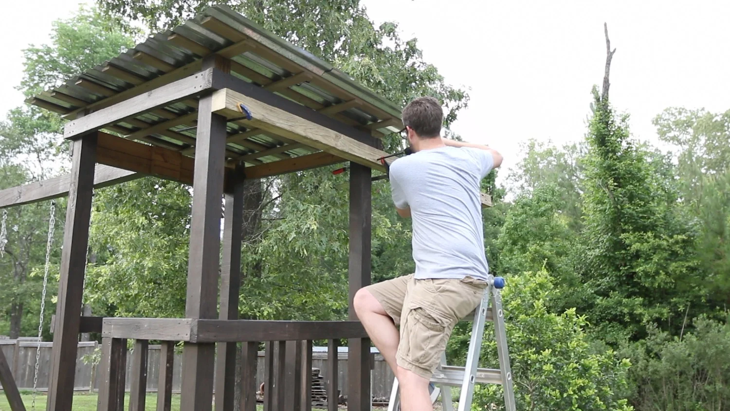 I few years ago, I built a pretty large kids' playhouse in the backyard. I made it extra tall so that the there was a lot of swing and the kids could go high. They're out there a lot, and I wanted to add something on that would keep them interested in yet another activity out there.