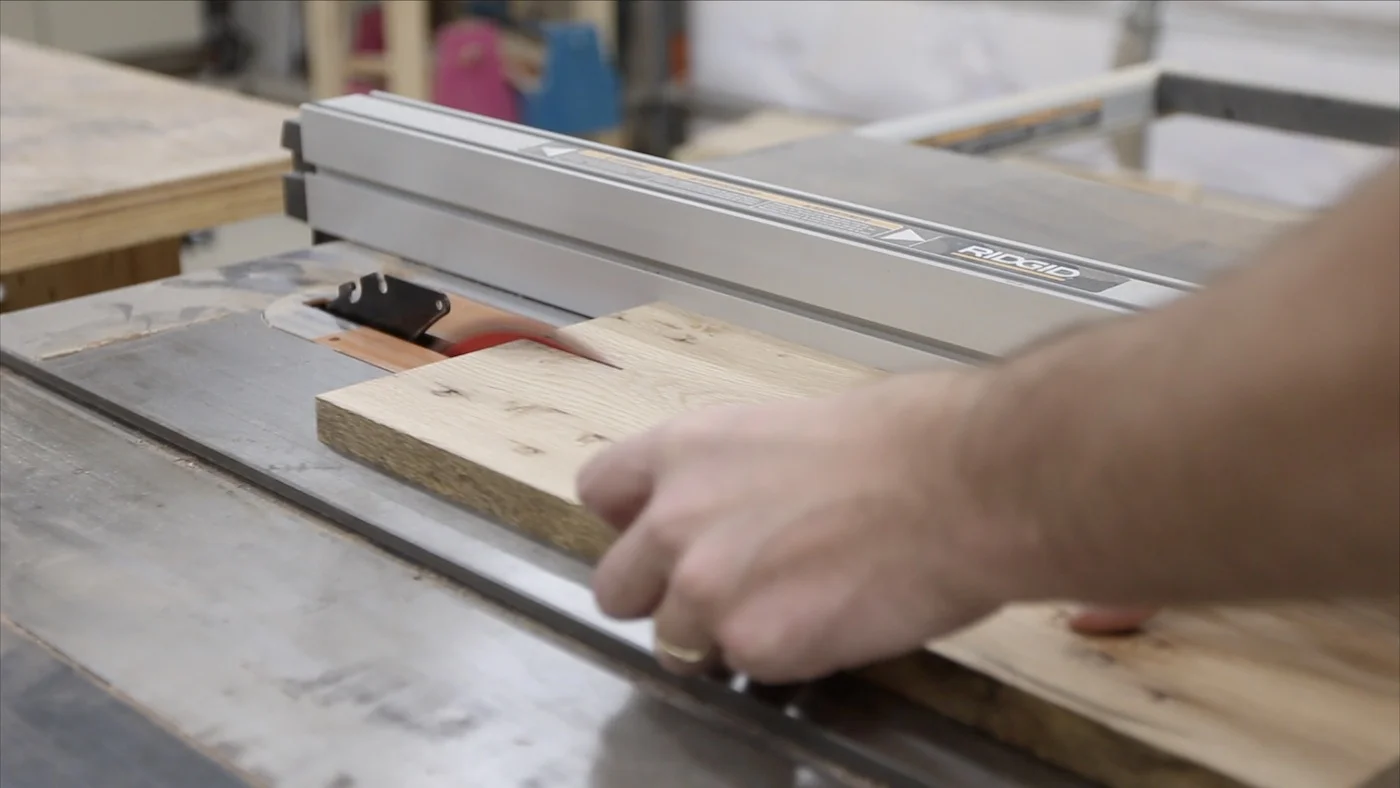 Then, I grabbed a piece of rough sawn white oak that I had and cutting it to the rough length of the pieces I needed at the miter saw. Then, I ran it through the planer a few times. This particular piece was flat enough, I didn't have to use the jointer to get a flat face first. Then, I used the jointer to make one edge flat and square to the face, before taking it over to my table saw and ripping them all down to the same width.