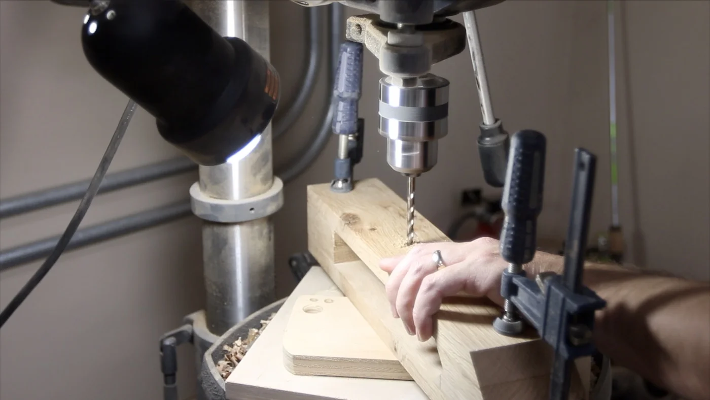 Before moving on, it is important to clamp both of the jaw pieces where they will ultimately go, and drill all the way through both of them. That way, they will line up later.