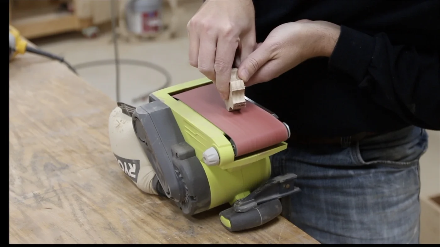 At this point, it was time for some hand sanding. I just sanded by hand with 220 grit sandpaper. The little bit of smoke stain that the laser left after engraving my logo was easily removed with some light sanding with 220 grit.