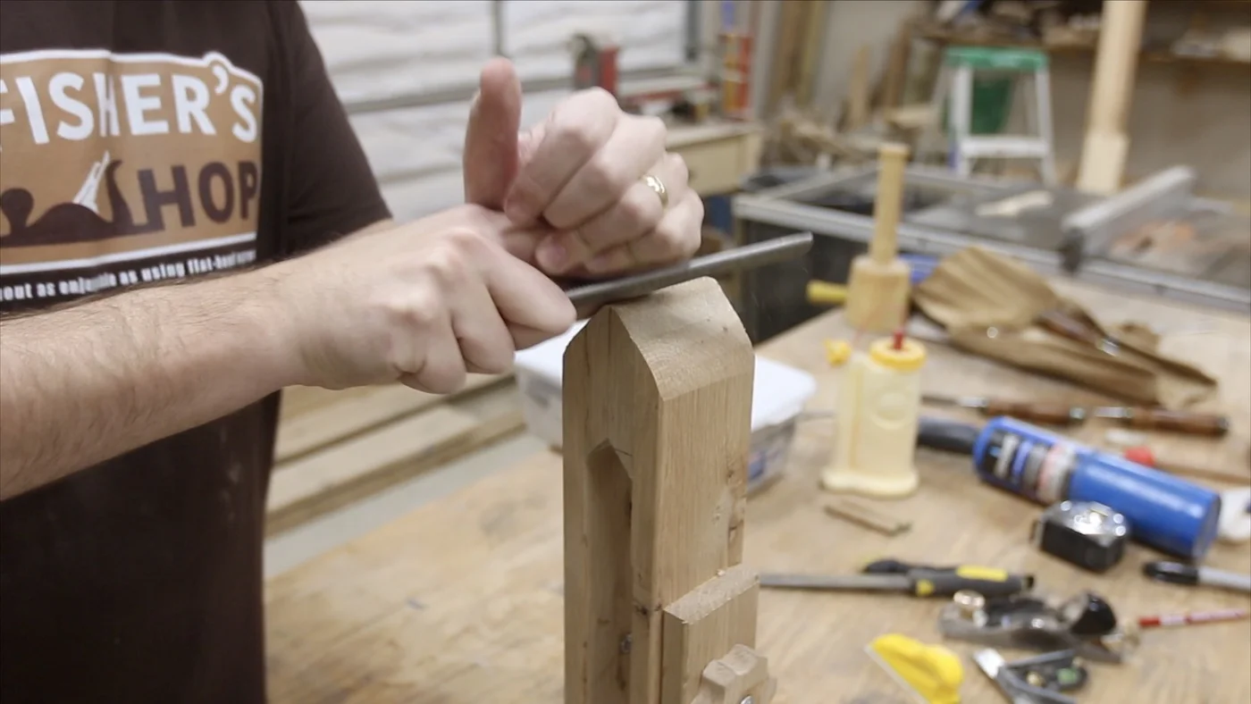 There needed to be a way to cinch the jaws together, and I've seen many ways to do this. I took the opportunity to try my hand at making a wooden knob, since I had never made one before. I set out to try to accomplish this without seeking any additional information online. I've seen people do it before, but not recently, so I wanted to just pull on the knowledge I've absorbed over the years.